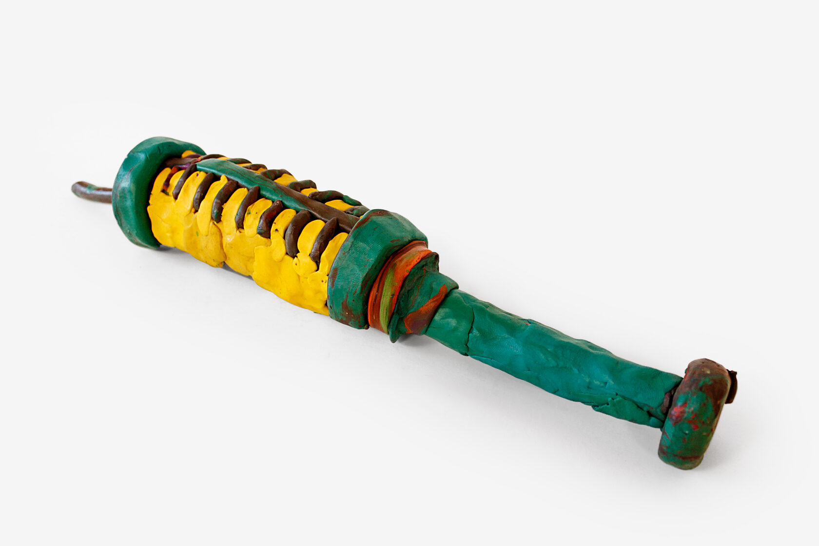 Раскатывая и смешивая килограммы материала по много часов в сутки, Алексей вылепляет машины, дома и медицинские инструменты, которые воспринимает прежде всего как объекты для игр: он может подолгу измерять давление пластилиновым тонометром или лечить ногу неким загадочным прибором «для починки пальцев».